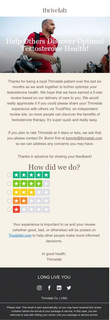 Burn weight, build strength & boost performance with #Thrivelab #TestosteroneReplacementTherapy. It’s evidence-based, personalized & proven to resolve 80% of patients’ #hormone imbalance symptoms within 90 days. Get started with a $45 initial consult @ http://Thrivelab.com